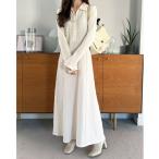 ワンピース 「daaco×クラシカルエルフコラボ」着回し抜群、一枚でフェミニンな抜け感をプラス♪キーネックダンボールロングワンピース