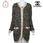 CHANEL シャネル ココボタン ロング カーディガン 38 ブラック×ゴールド ニット トップス ワンピース カットソー ブ