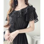 「全身 体型カバー 」 シフォン ワンピース シフォンワンピース ワンピ レディース フォーマル オケージョン ドレス ロングワンピース 袖あり ブラック 半袖 シアー きれいめ ロングワンピ ロング 大きいサイズ Vネック パーティー 結婚式 黒 春 夏 HUG.U