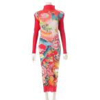 プリーツプリーズ イッセイミヤケ 龍柄 中国縁起 ロング ワンピース PP81-JH788 レッド 3【中古】