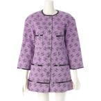 シャネル 22S ココマーク 総ロゴ スパンコール ノーカラー ロング ジャケット ワンピース P72568 パープル 34【中古】