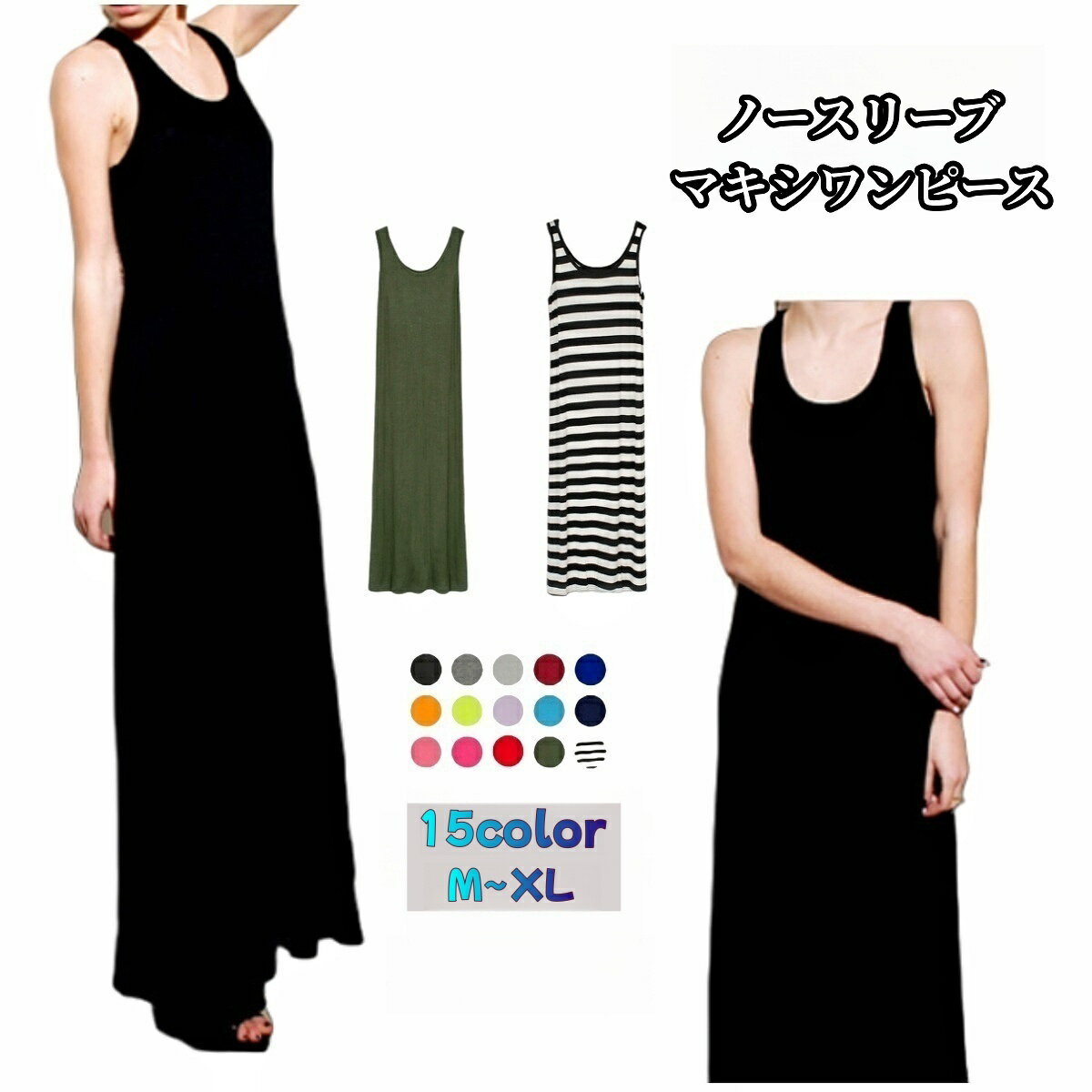 キャミソールワンピース レディース ロング丈 ノースリーブ カジュアル シンプル 夏 涼しい ルームウェア 部屋着 重ね着 大きいサイズ M L XL 2XL