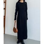 ワンピース クルーネック リブ フレア ニット ワンピース