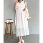 ワンピース チュール レイヤード キーネック ロング ワンピース
