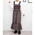 ワンピース 重ねチュール チェック柄 半袖ロングワンピース
