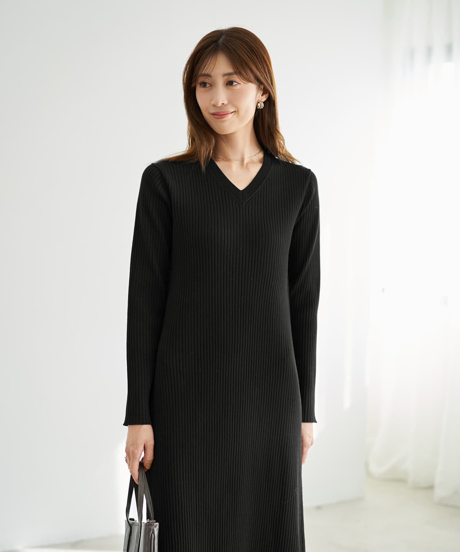 STYLE DELI(スタイルデリ)/リブ編みVネックロングワンピース