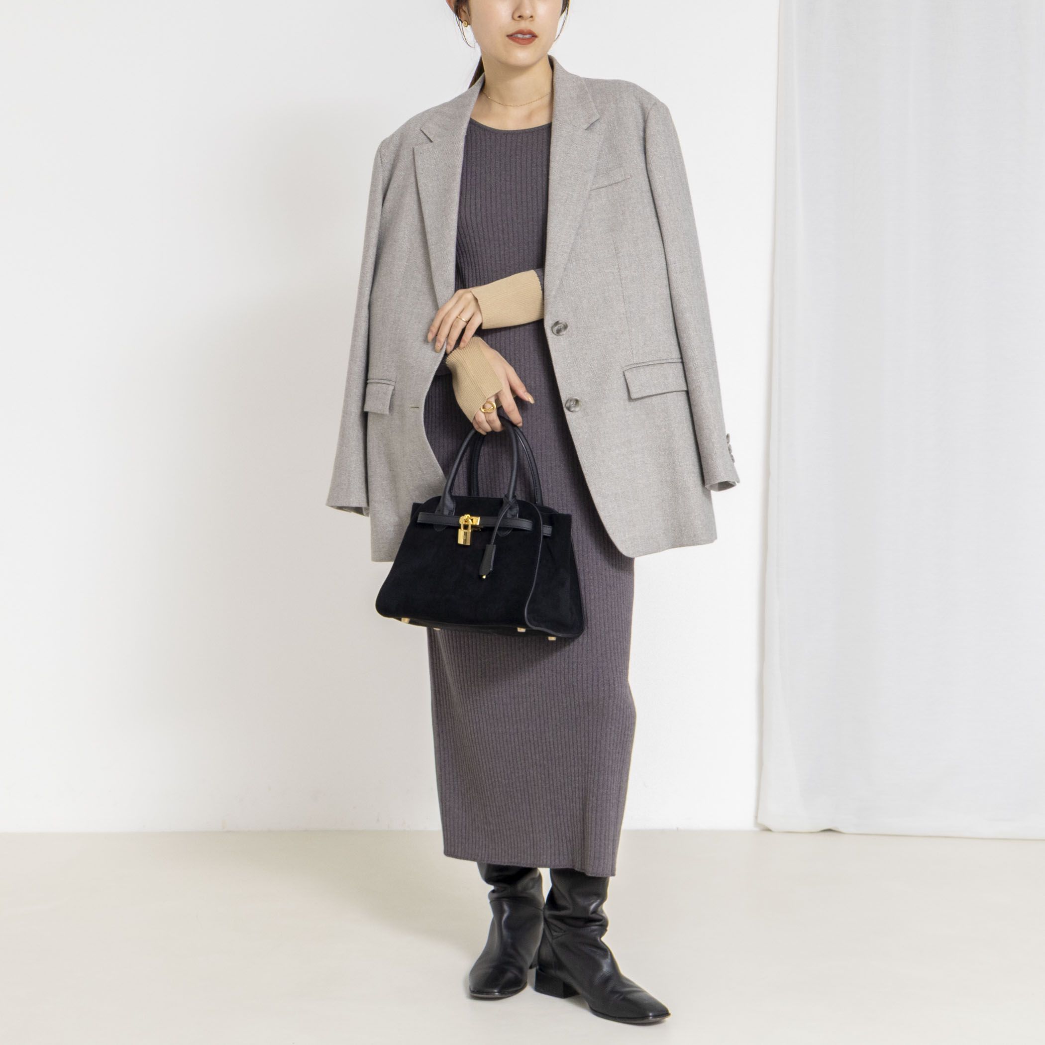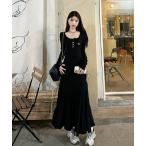 ワンピース レイヤードニットロングワンピース