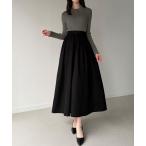 ワンピース レースアップニットトップス+フレアワンピースセット「高身長サイズMT/低身長サイズS有り」