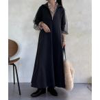 ワンピース 「WEB限定」異素材切替ニットワンピース