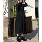 セール ワンピース レディース ハイネック ミディ ロング リブニット 秋 冬 ニットワンピース ゆったり E1536送料無料