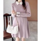 ワンピース 「WEB限定」襟フェザーリブニットワンピース