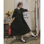 ワンピース フリルカラーフレアワンピース