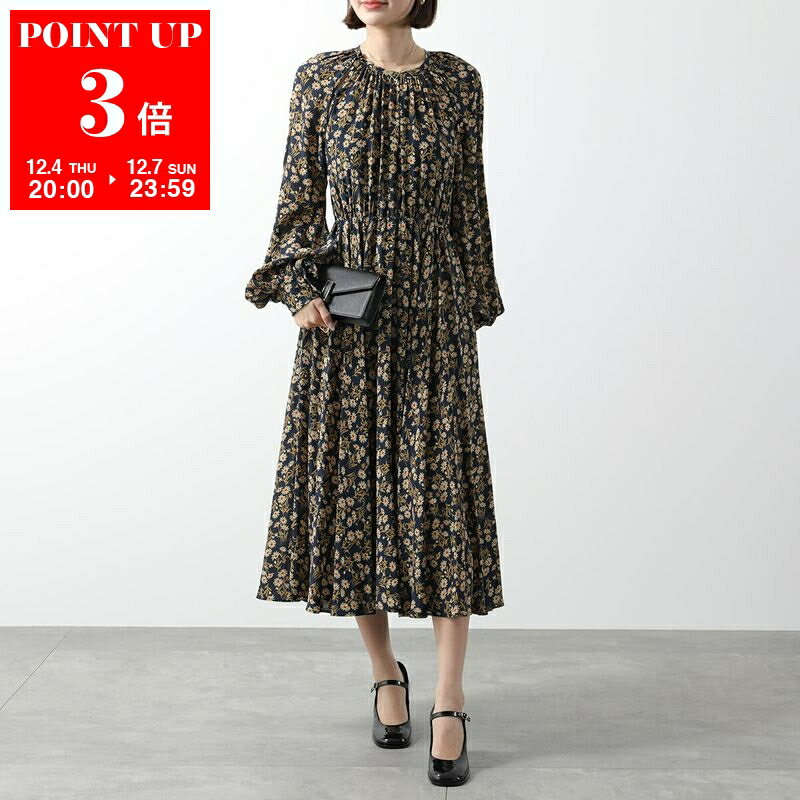 N°21 ヌメロヴェントゥーノ ワンピース H103 5549 レディース ドレス シフォン フレア プリーツ ロング丈 シルク ラウンドネック フラワー 総柄 SM61