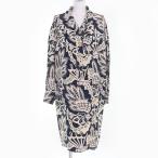 良品☆CHANEL シャネル ヴィンテージ ココマーク柄 90年代 シルク100% 長袖 ワンピース ベージュ ネイビー 38 仏製 正規品 レディース