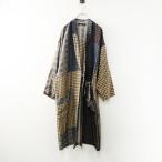 美品 トワヴァーズ TOWAVASE シルクペイズリーパッチワークプリントローブコート\ネイビー系 羽織り ロング【2400014737103】