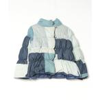 ダウンコート ダウンジャケット ウォッシュドデニム&先染めヒッコリー パッチワーク ダウンジャケット レディース