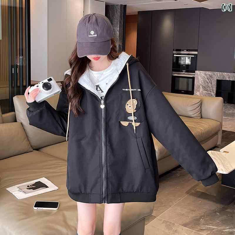 レディース ファッション アウター ジャケット ス 秋冬 裏起毛 ワークコート ゆったり かわいい 学生 ガール カレッジ コットン ウインドブレーカー
