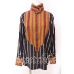 ヴィヴィアンウエストウッド 中古 / ストライプブロッキングフリルシャツ S ブラウンxネイビー O-25-09-21-042-bl-YM-OS