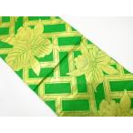 美品 丸帯 名品 扇面 草花 箔 金糸 青緑 お太鼓柄 正絹 中古