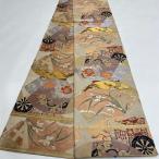 鶴に御所車・菊・笹模様織り出し丸帯(材料)【アンティーク】【中古】【着】 宗sou