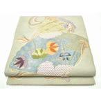 平和屋着物●アンティーク 大正ロマン 丸帯 引き抜き帯 唐織 立波に群れ鶴 金銀糸 正絹 逸品 DABB4609ps