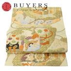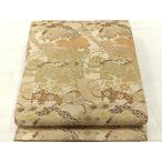 【中古】 袋帯 正絹(金銀糸除く) ベージュ ゴールド 御所車柄 風景柄 丸帯 和装 呉服 和服 きもの レディース 女性