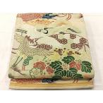 【中古】 袋帯 吉祥文様 正絹(金銀糸除く) ベージュ マルチカラー ゴールド 丸帯 リバーシブル 全通 和装 呉服 和服 きもの レディース 女性