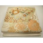 【中古】 袋帯 正絹(金銀糸除く) ベージュ ゴールド 丸帯 両面 全通 和装 呉服 和服 きもの レディース 女性