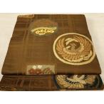 \20%OFFクーポン+P2倍/ 【中古】リサイクル 丸帯 正絹 仕立て上がり 茶色系 桐文様 全通柄 金糸 フォーマル 礼装 uu0526b