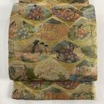 美品 丸帯 名品 色紙 人物 金糸 箔 金色 お太鼓柄 正絹 中古