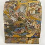 丸帯 美品 秀品 風景 人物 金色 全通 正絹 中古