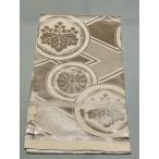 美品 丸帯 名品 花菱 縞 金糸 唐織 灰色 六通 正絹 中古
