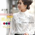 トップス ブラウス レディース 長袖 立ち襟 フリル 通勤 OL シャツブラウス フォーマル 無地 シンプル 着痩 インナー スーツコーデ ワイシャツ 30代 40代 事務服