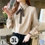 シャツ ブラウス レディース 春 秋トップス シャツ 長袖 リボン 無地 ゆったり 着痩せ 春シャツ ナチュラル 大人 通勤 旅 30代 40代 コットン