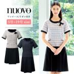 事務服 ワンピース レディース 制服 nuovo 秋冬 春 FOLK 半袖 リボン付き チェック柄 白 紺 医療事務 オフィス 冠婚葬祭 大きいサイズ おうちで洗える 送料無料