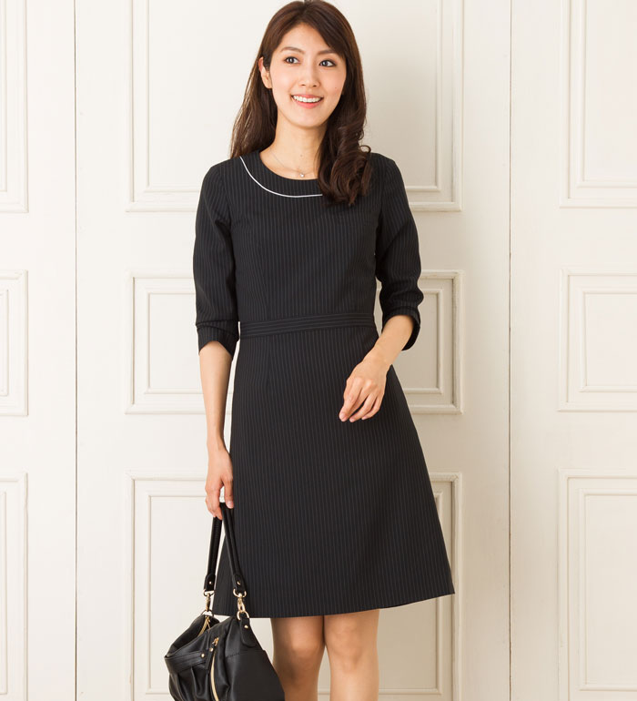 ブラックストライプ七分袖ワンピース レディース 春夏 事務服 オフィス制服 BONMAX BONOFFICE