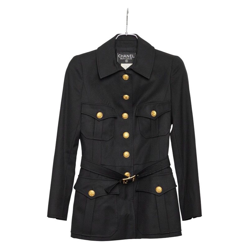 シャネル ココボタン ベルト付きジャケット パンツ セットアップ サイズ:36 ブラック ゴールド ウール レディース CHANEL 【中古】