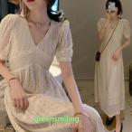 ワンピース レディース 40代 マキシワンピース 春夏新作 きれいめ 白ドレス 半袖ワンピースレースフレアスカート オシャレ 結婚式ドレス お出かけ 30代 50代