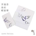 手描き染め軽装帯【手描き染め 茄子 白地】ワンタッチ帯 染帯 簡単 軽装帯 手描き染 染め帯 作り帯 付け帯 付帯 二部式 文化帯 太鼓 お太鼓 茄子 野菜