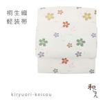 桐生織軽装帯 草花柄 オフホワイト地 花柄 簡単軽装帯 作り帯 ワンタッチ帯 お太鼓 付け帯 付帯 文化帯 京袋帯 カジュアル 小紋 結び帯 名古屋帯