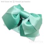 作り帯 浴衣 青緑色 エメラルドグリーン 麻の葉 リボン りぼん 浴衣帯 結び帯 付帯 つくり帯 浴衣向け 日本製