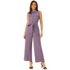 Allegra K ジャンプスーツ ノースリーブ 足首ネクタイウエスト 作業服 ボタンフロント レディース パープルxL