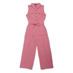 Allegra K ジャンプスーツ ノースリーブ 足首ネクタイウエスト 作業服 ボタンフロント レディース ピンク L