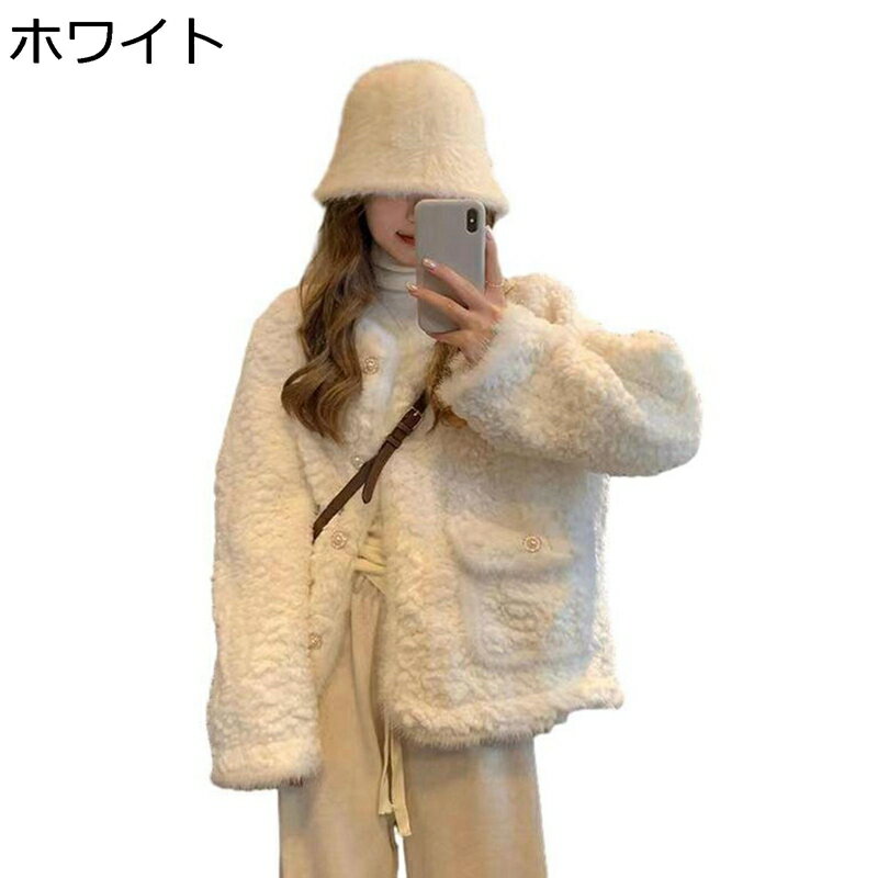 【20%OFFクーポン〜】ふわふわ?ファーコート ボアジャケット レディース 冬服 厚手 あったたか 防寒 ボアブルゾン ノーカラー ボタン付き ポケット付き 大きい スリム 体型カバー ボアコート 御洒落 韓国 お出かけ 作業着 アウター
