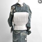 美品 名古屋帯 逸品 証紙あり 八寸名古屋帯 松葉仕立て 博多織 筑前間道 花唐草 青灰色 正絹 中古