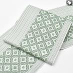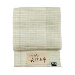 八寸名古屋帯 長沙上布 スクイ手織り 麻 夏帯 格子 緑