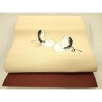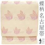 名古屋帯 京都 西陣 八寸 正絹 全通 鳥の子色地 アゲハ蝶 地紋 カジュアル 春 秋 冬 松葉仕立て 新古品 仕立て上がり みやがわ sb54996