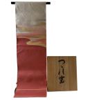 名古屋帯 逸品 浅田綴 八寸名古屋帯 松葉仕立て 共箱付き 霞 金銀糸 薄オレンジ 正絹 中古