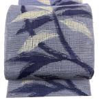 名古屋帯 名品 八寸名古屋帯 夏帯 トンネル仕立て 葉柄 青紫 正絹 中古