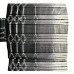 美品 名古屋帯 名品 夏帯 八寸名古屋帯 縞 菱 銀通し 黒灰 正絹 中古